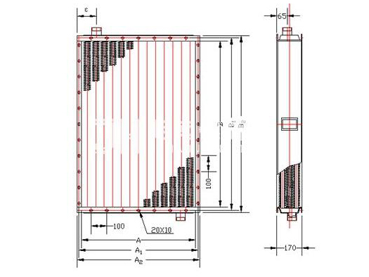 ①—表示鋼制空氣熱交換器(散熱器)通風(fēng)正截面長尺寸分米化整