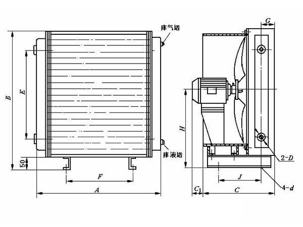 FL型空氣冷卻器是液壓系統(tǒng)常用的一種空氣熱交換器。采用環(huán)境空氣作為冷卻源,用來冷卻管內熱油,屬于風冷式空氣冷卻器,以“風冷”的第一個字母命名,以換熱面積作為后綴。如FL-5,即表示該型號為風冷形式,換熱面積為5平方米。