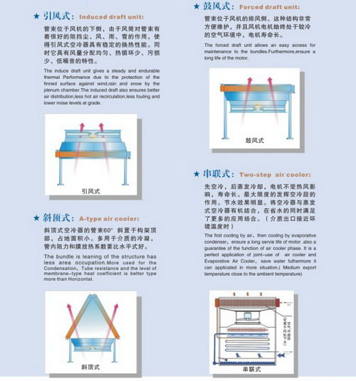 空氣冷卻器是以環(huán)境空氣作為冷卻介質(zhì),對(duì)管內(nèi)高溫流體進(jìn)行冷卻或冷凝的設(shè)備,它具有不需要水源,適用于高溫、高壓的工藝條件,使用壽命長(zhǎng),運(yùn)轉(zhuǎn)費(fèi)用低等優(yōu)點(diǎn),廣泛應(yīng)用于石油化工,煤化工,電站,冶金等行業(yè)。等隨著水資源和能源的匱乏以及環(huán)保意識(shí)的增強(qiáng),節(jié)水、節(jié)能、無(wú)污染的空氣冷卻器將會(huì)得到廣泛的應(yīng)用。